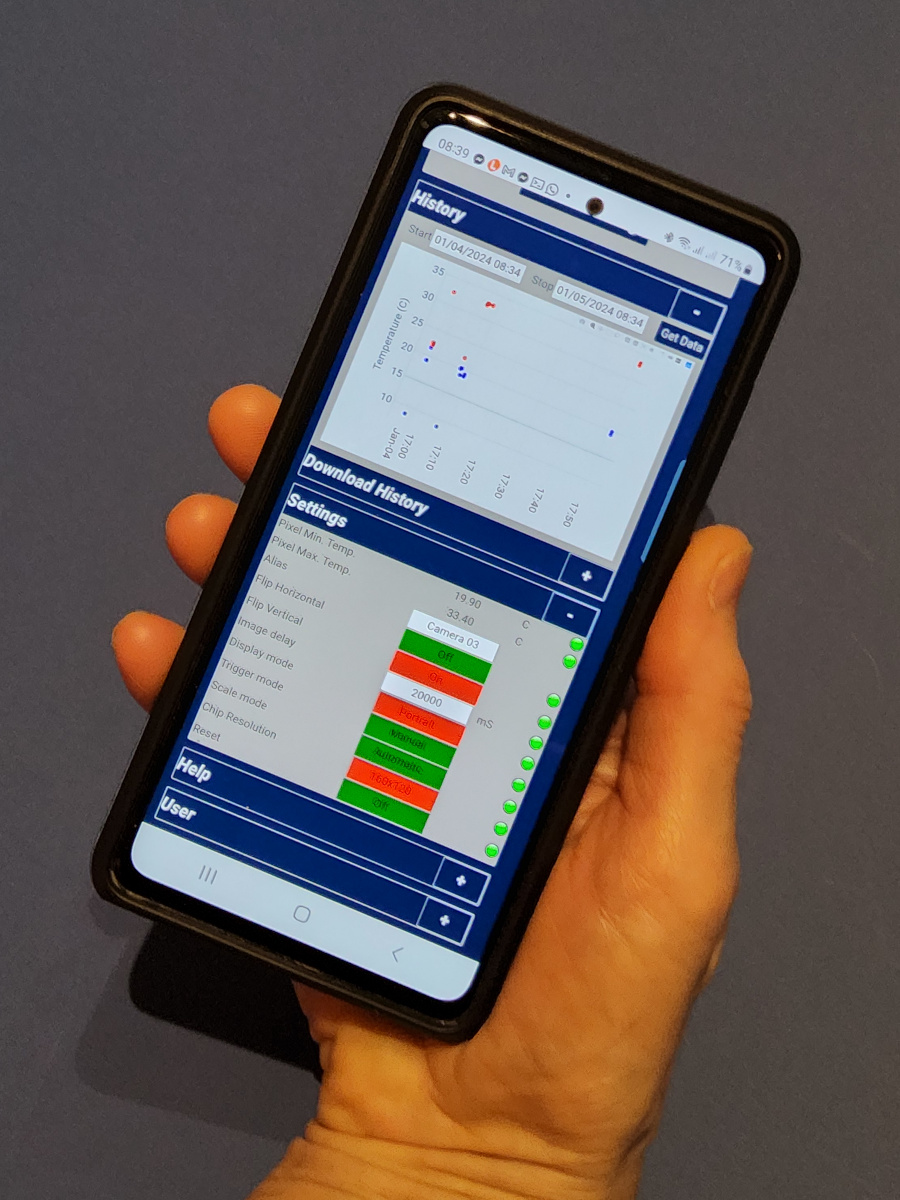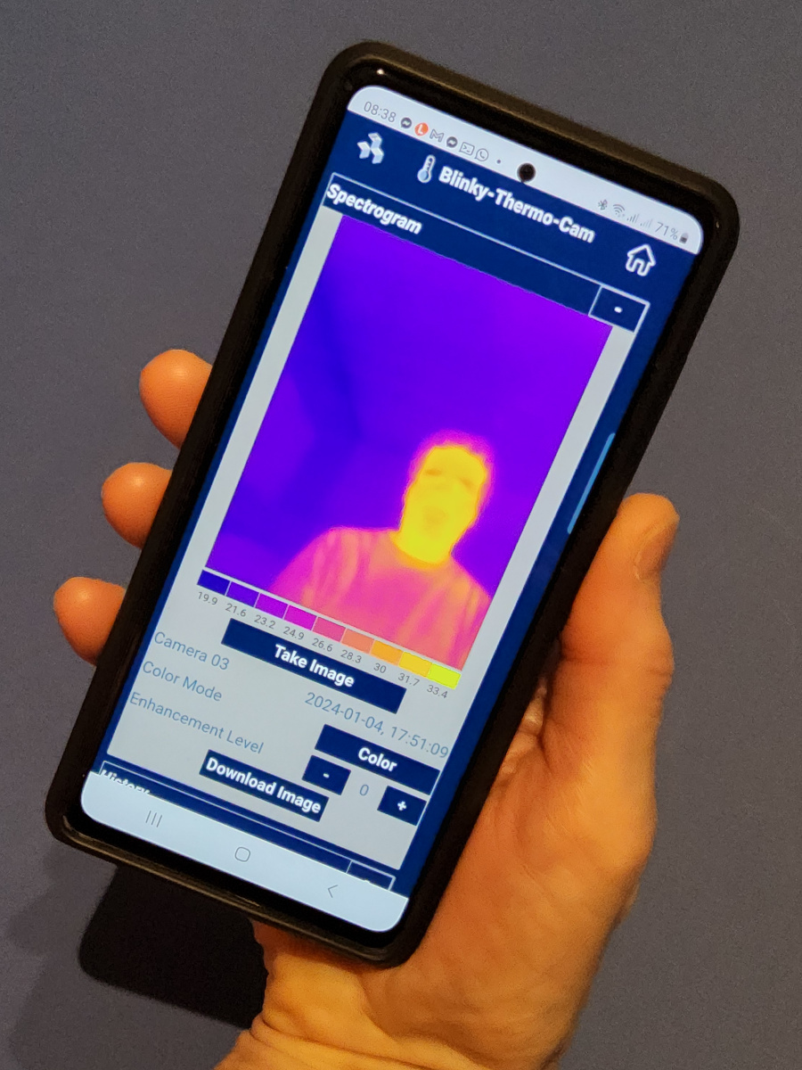Blinky-Thermo-Cam is a low cost, remotely deployable, thermal imaging processing system based on the Flir Lepton LWIR Micro Thermal Camera Module. Blinky-Thermo-Cam is wireless and can operate on 5V batteries for remote operation. Periodic, manual, or motion triggering modes are available.